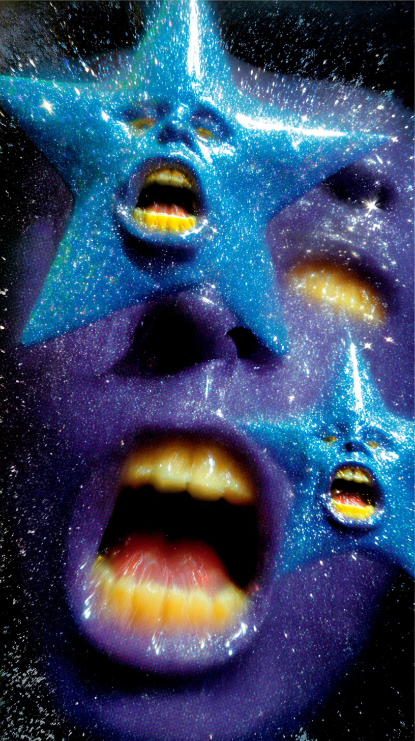 These faces of light are angry, distorted, burning — but they’re also fragile. They are the aesthetic translation of pain: powerful, loud, distorted, yet strangely human.